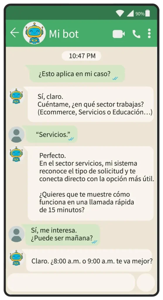 - Flujo conversacional diseñado para tu industria